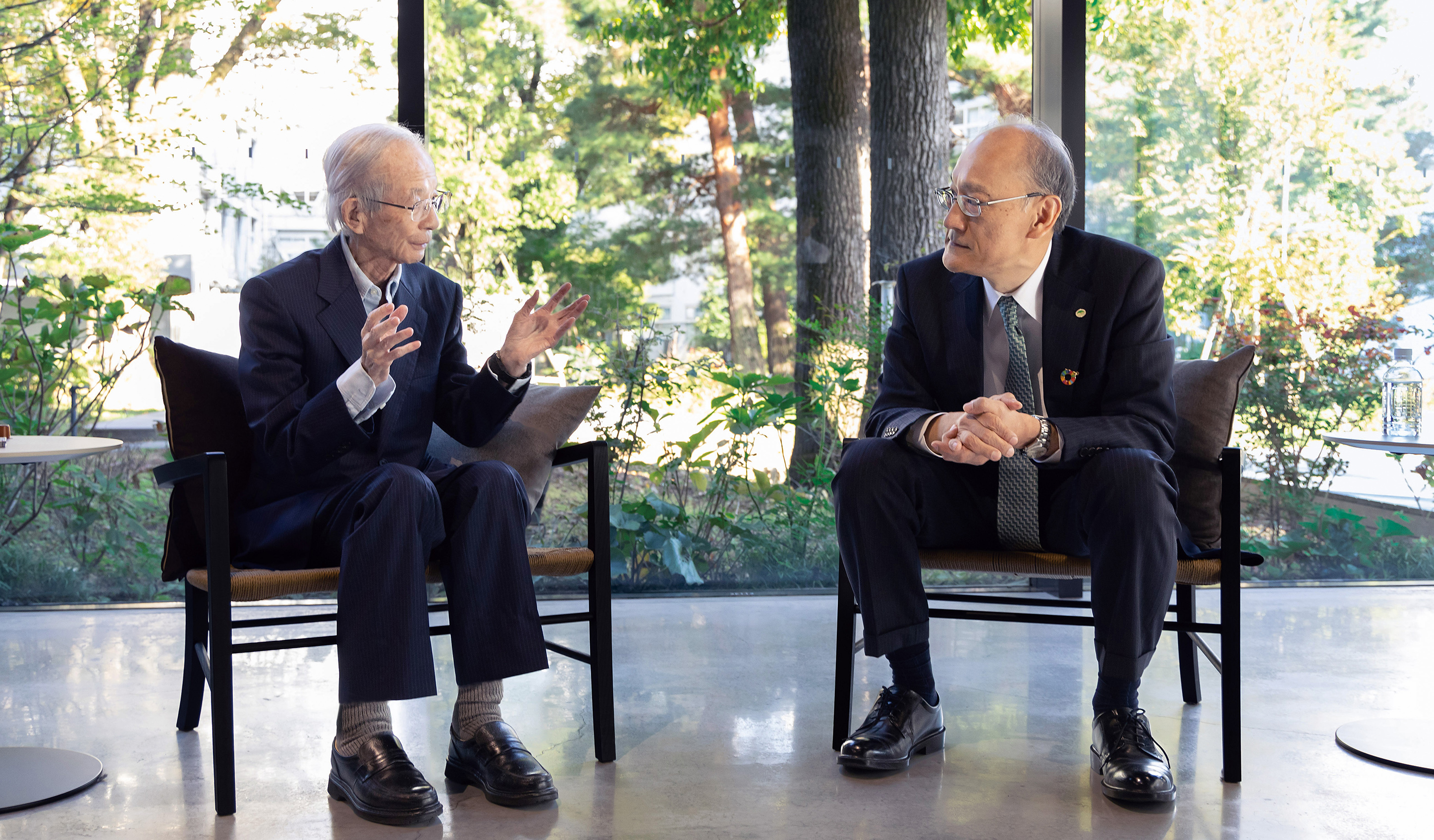 Suzuki:It is indeed crucial to make platforms so called “Ba” and routines for intellectual combat and to carry out verbalization. When I was stationed in the U.S., I had the opportunity to visit the research laboratories of some advanced companies. They did not only have a place to discuss with customers, but also a lodging facility, so we could have discussions while having dinner, too. They practiced the process of visualizing, verbalizing, and conceptualizing after engaging in intellectual combat. I was reminded of the importance of feeling with the five senses when we were prevented from having direct dialog with others during the COVID-19 pandemic. Now that the pandemic is behind us, I have reaffirmed the significance of Kyoso no Mori as a “Ba” for intellectual combat.