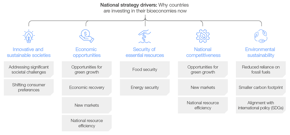 There are several underlying reasons why countries publish bioeconomy strategies. These can be summarized under five categories(Figure 2):