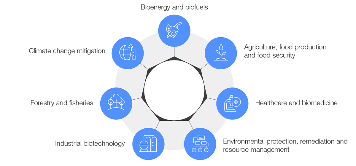 The bioeconomy provides solutions to urgent world challenges. From curing diseases to the production of chemicals and fuels to sustainable food production, the bioeconomy is everywhere.*1 As digital technologies advance alongside the ability to read, write, edit and, increasingly, functionalize DNA, the application areas for the bioeconomy are expanding rapidly – extending into areas that seemed unthinkable even a decade ago.*2 Owing to its inherent programmability, the “tech-driven bioeconomy” is providing significant commercial opportunities to deliver better outcomes for people and the planet.