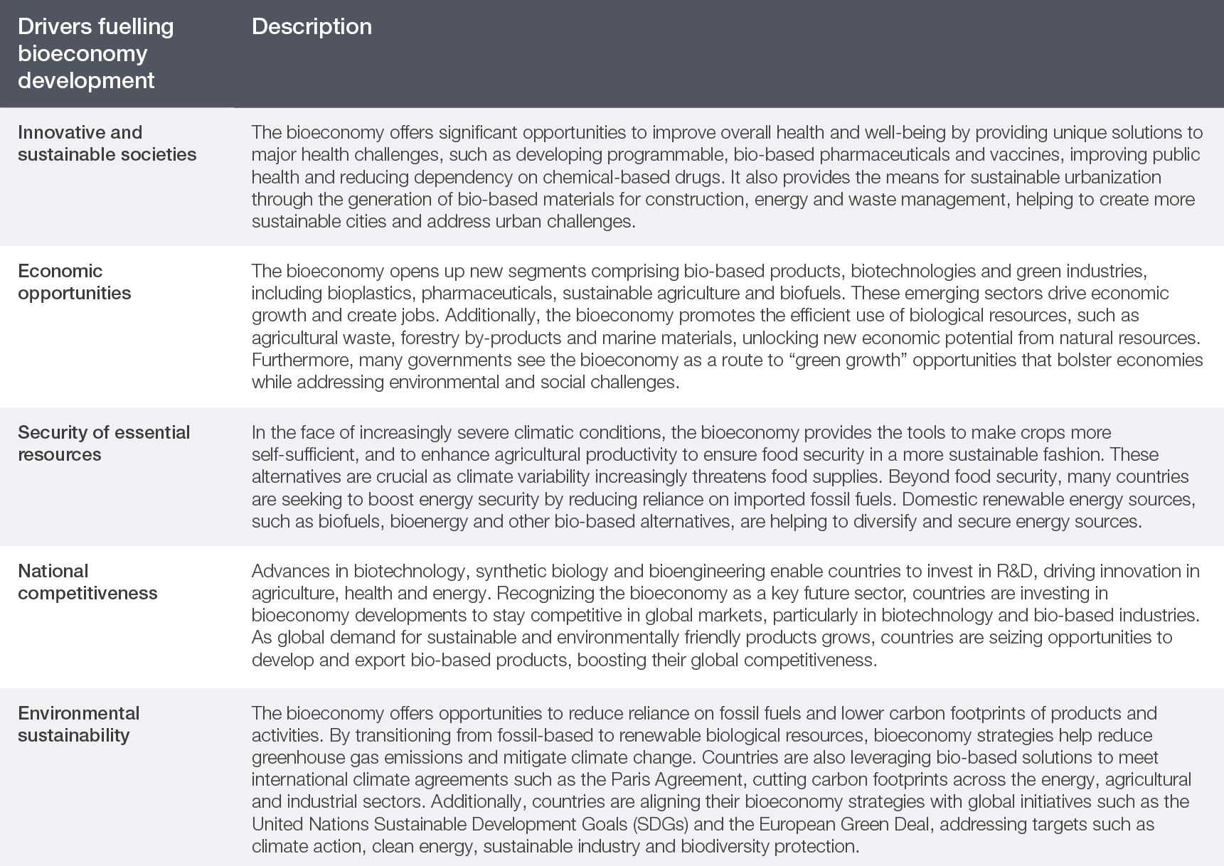 Table 1: Drivers fuelling bioeconomy development