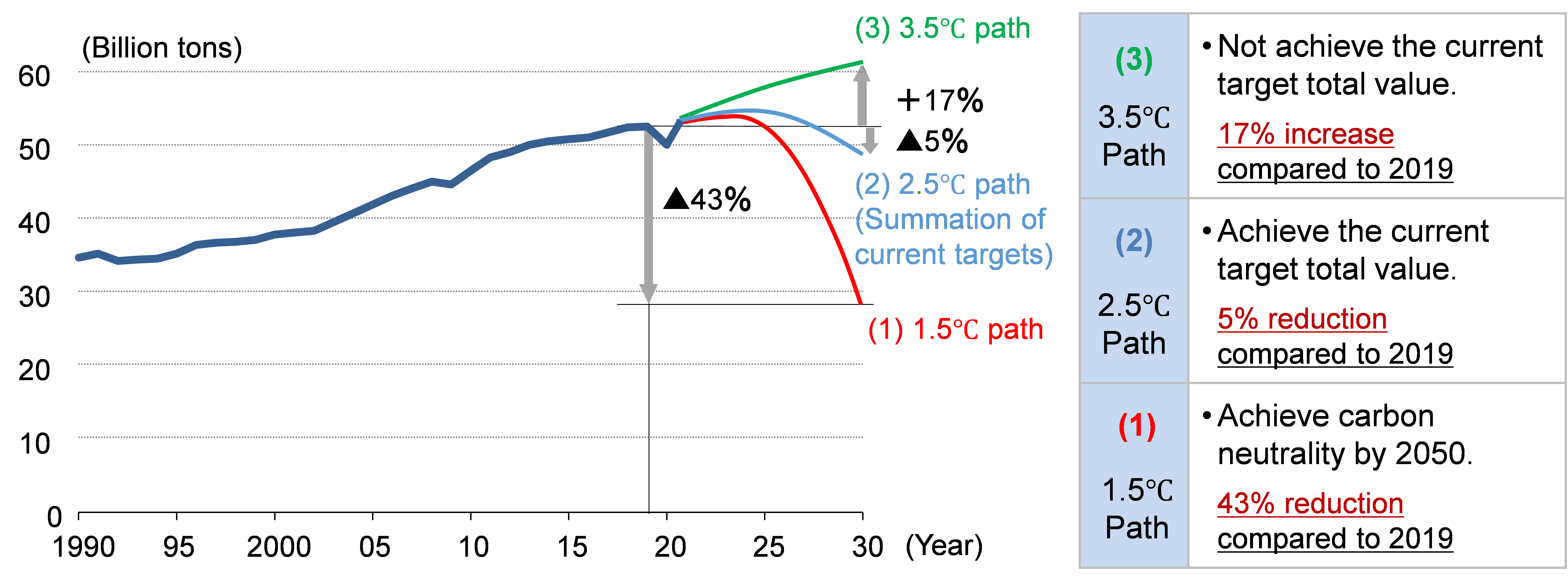 It is becoming increasingly difficult to achieve the 2030 emission-reduction target (43% compared to 2019 level) required to meet the 1.5°C target of the Paris Agreement. It is expected that the USA, China, and other countries might be unable to achieve their current targets, and the world may move toward the 3.5°C path, and that possibility has been warned about in a report by the Intergovernmental Panel on Climate Change (IPCC) (Figure 2).