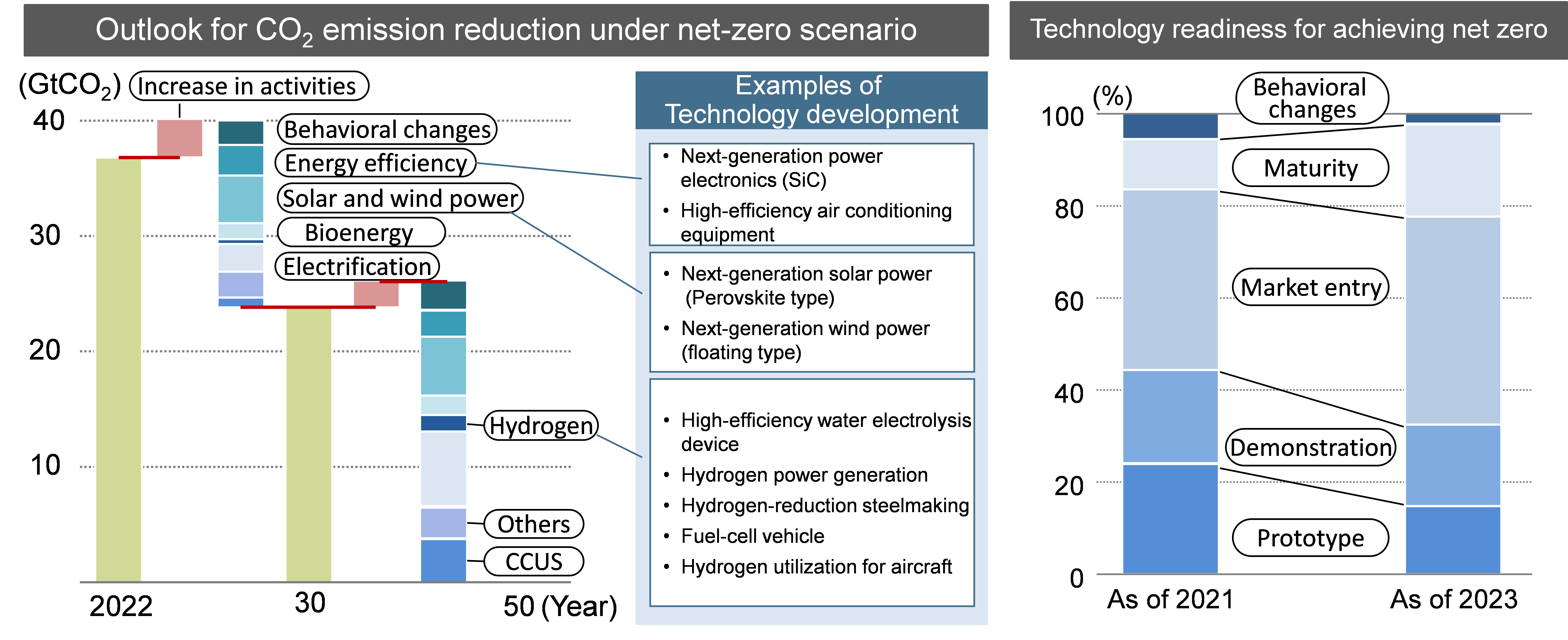 Source: Prepared by Hitachi Research Institute from International Energy Agency “Net-Zero Roadmap” and other materials.