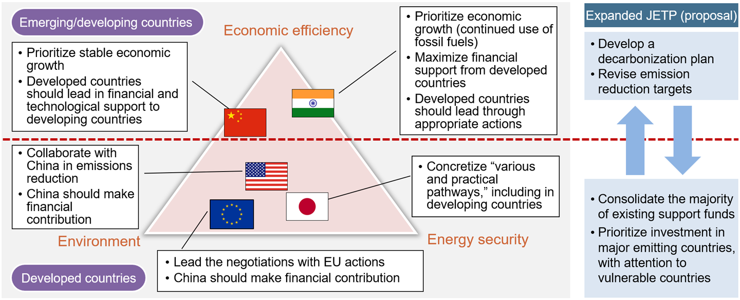 The discussions leading up to COP29 regarding financial support mainly focused on the scale of funding, with less discussion on the content of financial support. Moving forward, there is room for consideration of proposals from a broader perspective, such as the “Expanded JETP (Just Energy Transition Partnership)” proposed by the European think tank Bruegel, as a feasible plan. The operation of JETP, established in 2021 by a group of developed countries, has begun, and it is currently supporting coal phase-out plans in countries such as South Africa, Indonesia, and Vietnam. It is a scheme that aims to develop ambitious plans for energy transition and provide substantial financial support to achieve them. However, there have been concerns raised about insufficient financial contributions from developed countries to JETP.