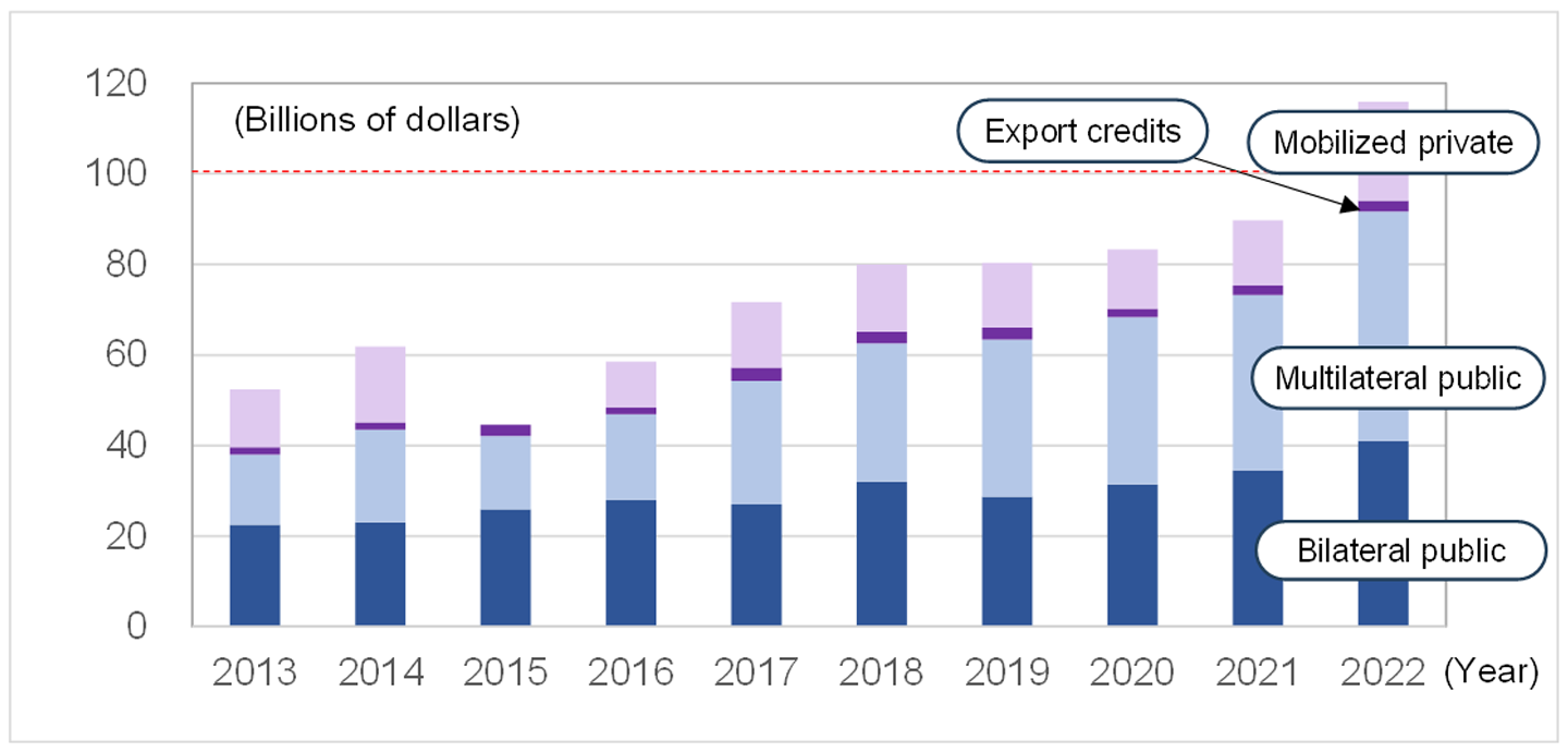 The current funding target of 100 billion dollars per year was originally set for 2020 but was extended to 2025 due to it not being achieved. It was finally achieved in 2022 (Figure 2). Based on this, it can be said that achieving the funding target of 300 billion dollars per year, as decided in COP29, will not be easy.
