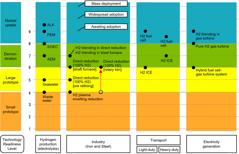 Figure 3:Technology readiness levels of hydrogen-related technologies