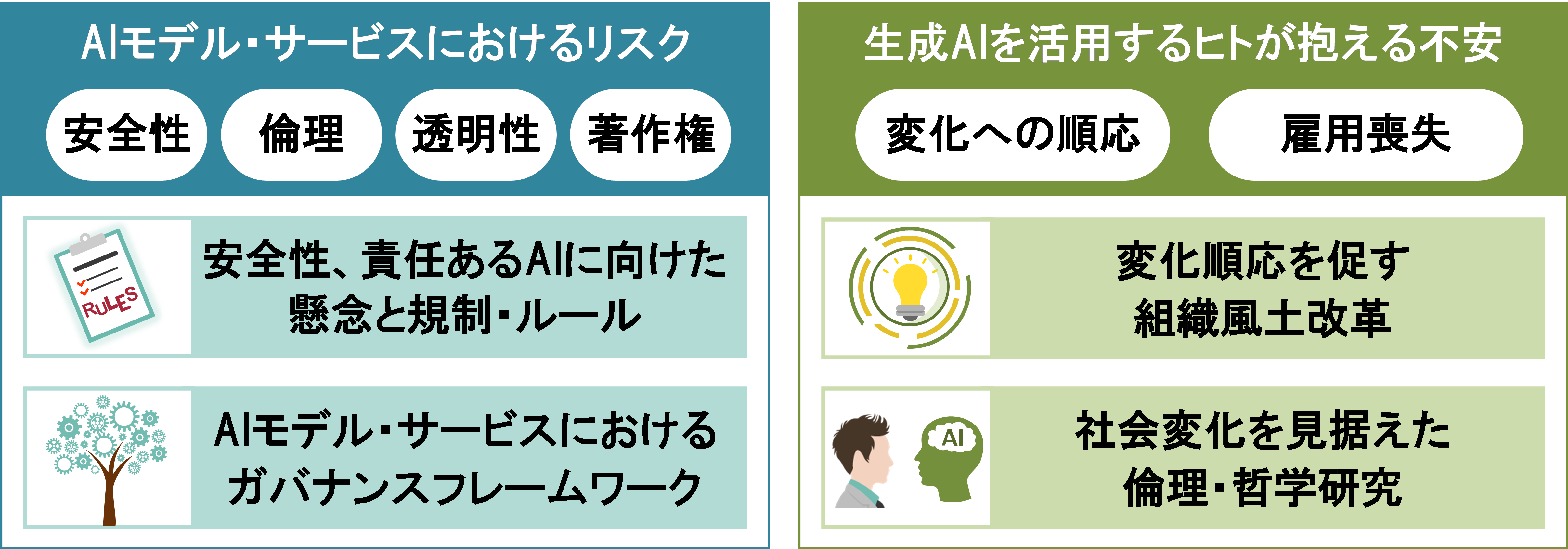 図8 AIモデル・サービスにおけるリスク、ヒトが抱える不安