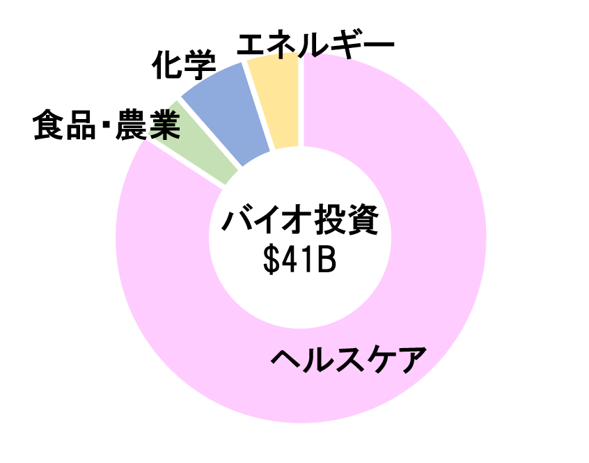 現在のベンチャーキャピタルによるバイオ技術スタートアップへの投資は、ヘルスケア分野が中心となっている(図3)。今後は食品・農業および化学・エネルギーの分野へと投資が拡大することが予想される。この傾向はバイオ関連産業の市場規模にも見られ、同市場が成長する2030年以降では、ヘルスケア、食品・農業、化学・エネルギーでそれぞれ同規模になると見込まれる(図4)。