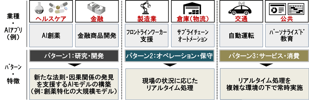 図7 業種・AIアプリに応じたAI活用のパターン・特徴(日立総研作成)