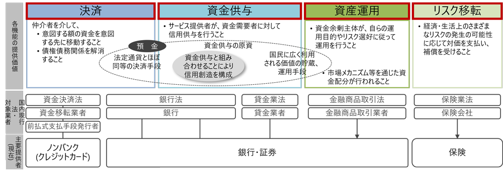 図2 金融機能分類における提供価値、現行法、主要提供者