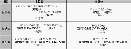 以下のように定義すると、「総需要=総供給=総所得」の関係が名目値でも実質値でも常に成立します。