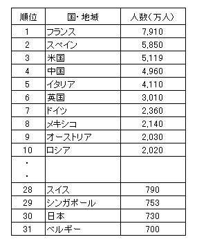 世界各国・地域への外国人訪問者数ランキング(2006年)