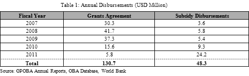 Currently, the OBA scheme that is used most widely under a dedicated program is called GPOBA. GPOBA is a partnership of World Bank and the Department for International Development, United Kingdom, established in 2003. Later, other organizations, such as the International Finance Corporation (IFC), the Dutch Ministry of Foreign Affairs (DGIS), the Australian Agency for International Development (AusAID), and the Swedish International Development Cooperation Agency (Sida) joined the program.