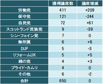 2024年7月4日に投開票が行われた英国の下院選挙では、事前の予想通り、野党労働党が全650議席のうち過半を大きく上回る411議席を獲得して大勝した(表1)。翌7月5日にスターマー党首は国王より首相に任命され、14年ぶりの政権交代による、労働党の新政権が発足した。
