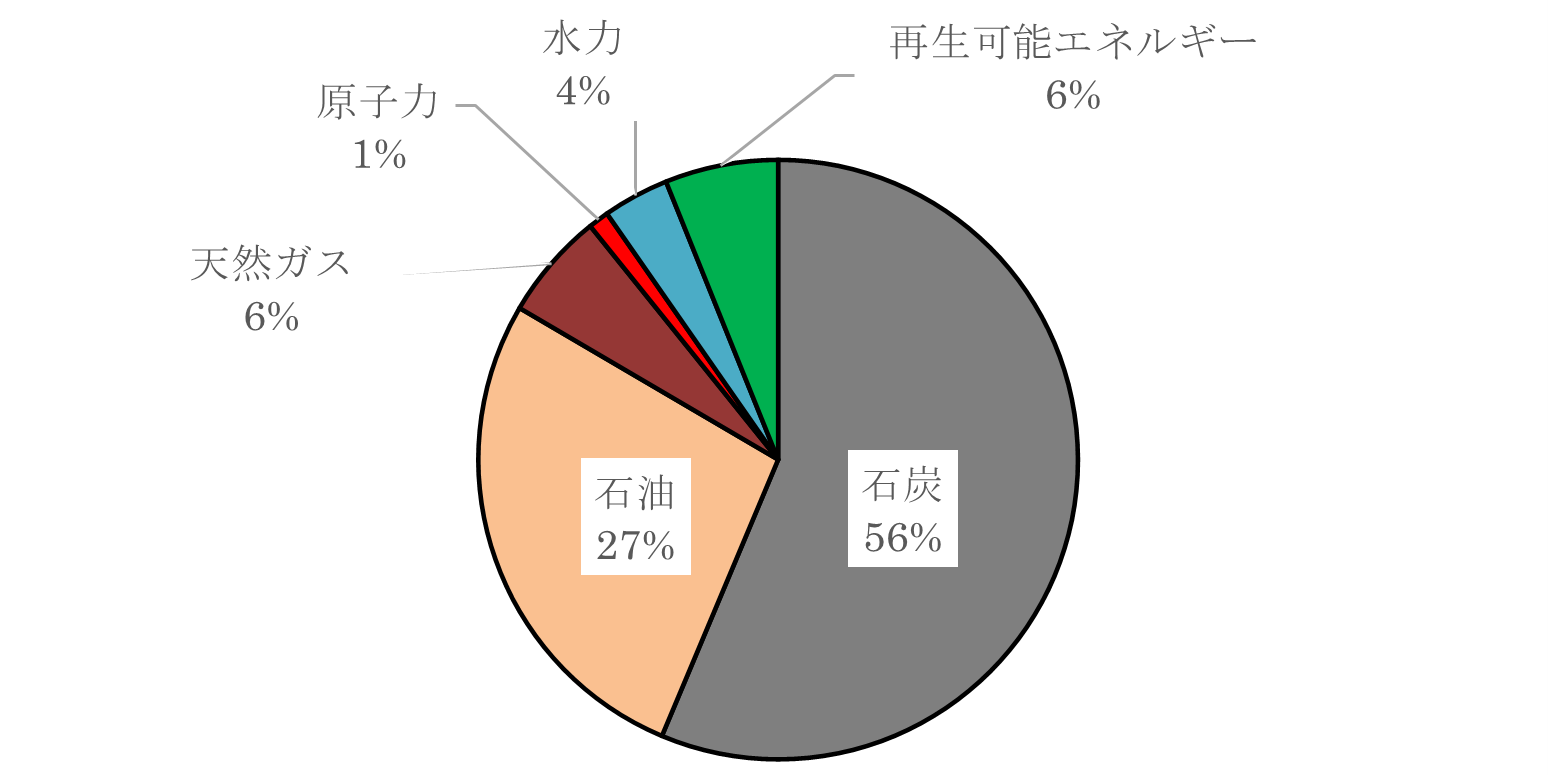 インドでは再生可能エネルギー導入が進む一方で、石炭への依存が根強い。インドの1次エネルギー構成を見ると、非化石燃料は1割に過ぎず、石炭(56%)・石油(27%)・天然ガス(6%)と、化石燃料が9割を占める(図3)。化石燃料のうち、石油は需要の約8割を輸入しており金額ベースで最大の貿易赤字要因であるほか、天然ガスも輸入に依存している。他方、石炭は需要の約2割は輸入に依存しているものの、インドが世界有数の石炭埋蔵・生産国であることから、約8割は国内調達が可能となっている。