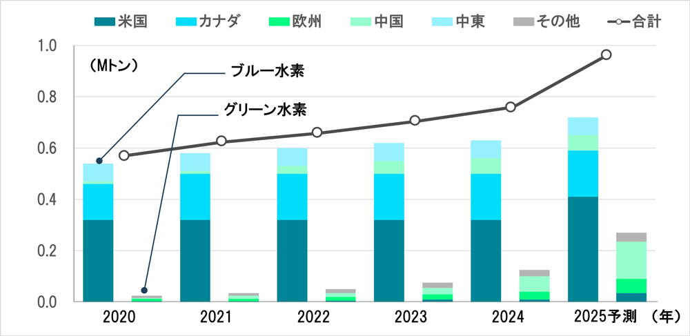 図1:グリーン・ブルー水素の生産量推移(世界合計)