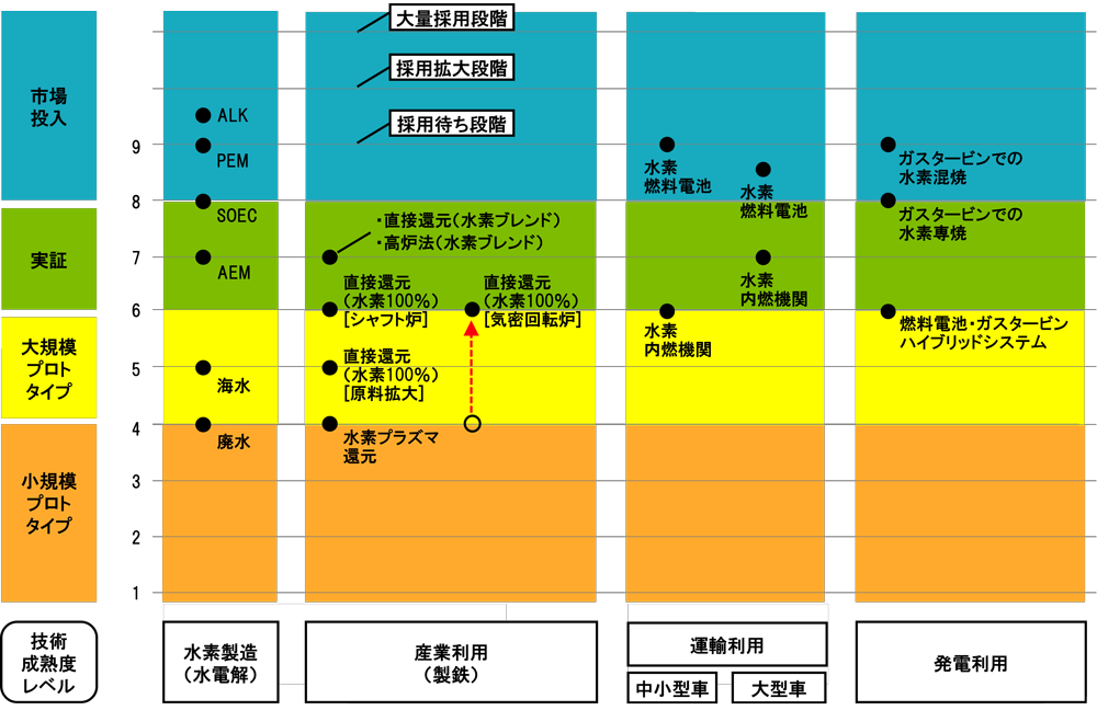 図3:水素関連技術の技術成熟度レベル